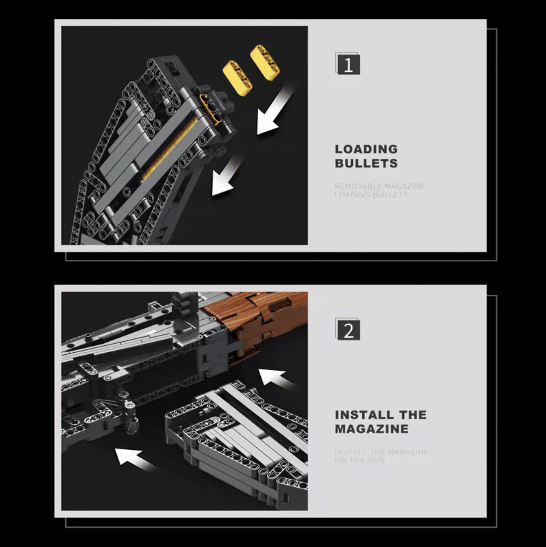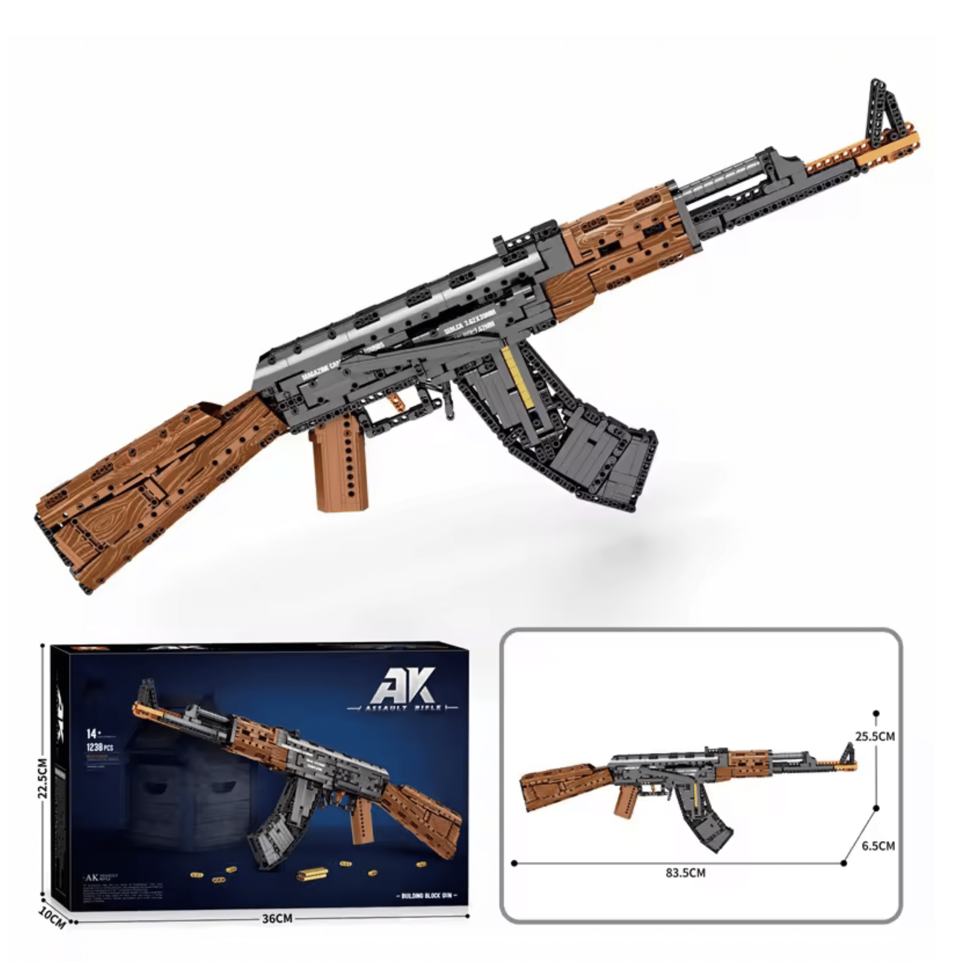 1. Conception réaliste : Nos blocs de construction modèle de fusil d’assaut AK47 présentent un design très détaillé et réaliste qui reproduit l’emblématique arme militaire.De la forme aux détails complexes, ces blocs de construction offrent une expérience de construction immersive aux passionnés militaires.